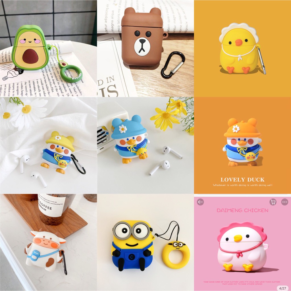 Giới thiệu SIÊU CUTE Case Vỏ bọc tai nghe không dây nhiều hình cute silicon cho airpod 1 / 2 / 3 pro kèm móc