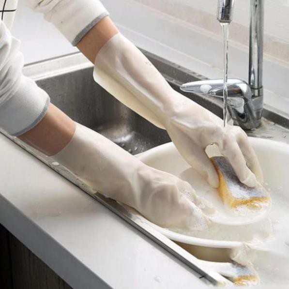 Nhà cửa & Đời sống > Dụng cụ & Thiết bị tiện ích > Găng tay, kính bảo hộ & mặt nạ || [SIÊU DAI - SIÊU BỀN] Găng tay cao su rửa bát mẫu mới ⚡ Cao su trắng (dai - bền - đẹp)Còn hàng