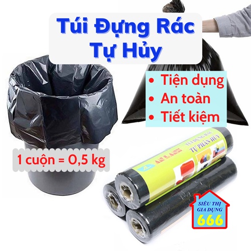 [SIÊU DAI] Túi rác Túi đựng rác tự phân hủy sinh học cuộn túi nilon đựng rác đen tiện lợi an toàn với môi trường