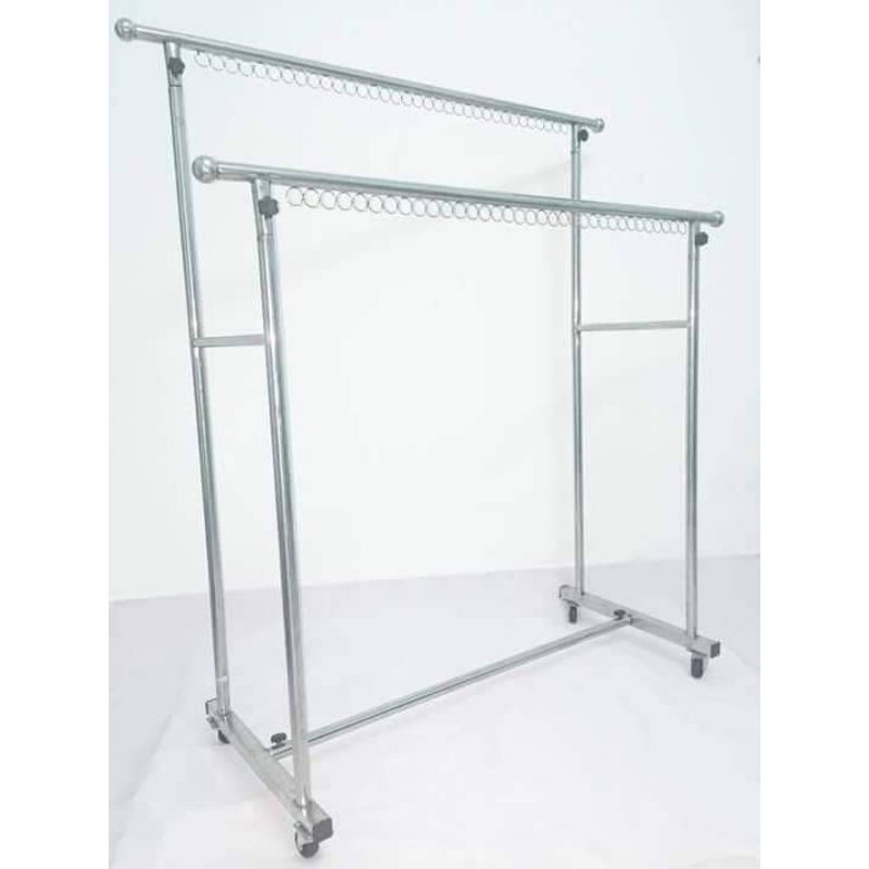 Nhà cửa & Đời sống > Sắp xếp nhà cửa > Mắc áo || [SIÊU DÀY, CÓ BÁNH XE] Sào phơi quần áo đôi Cây treo đồ 2 thanh Inox 100% - Loại cực dày ống phi 32Còn hàng