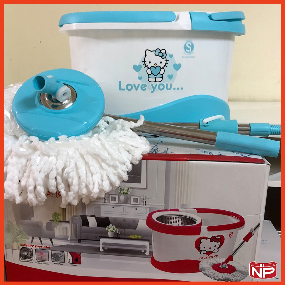 🎀 [SIÊU DỄ THƯƠNG] BỘ LAU NHÀ 360 ĐỘ HÌNH HELLO KITTY 🎀💖💖💖 Bộ lau nhà là vật dụng cần thiết cho mỗi gia đình. Sản phẩm Bộ lau nhà xoay 360 độ HAPPY MOPI - HELLO KITTY . Với điểm nhấn là bộ tạo chuyển động 360 độ siêu bền, bộ lau nhà HAPPY MOPI bạn sẽ dễ dàng lau sạch bụi bẩn trong mọi ngóc ngách và cả những nơi khó lau dọn như gầm giường, gầm bàn, tủ, ghế… giữ cho ngôi nhà của bạn luôn sạch sẽ và thoáng mát.