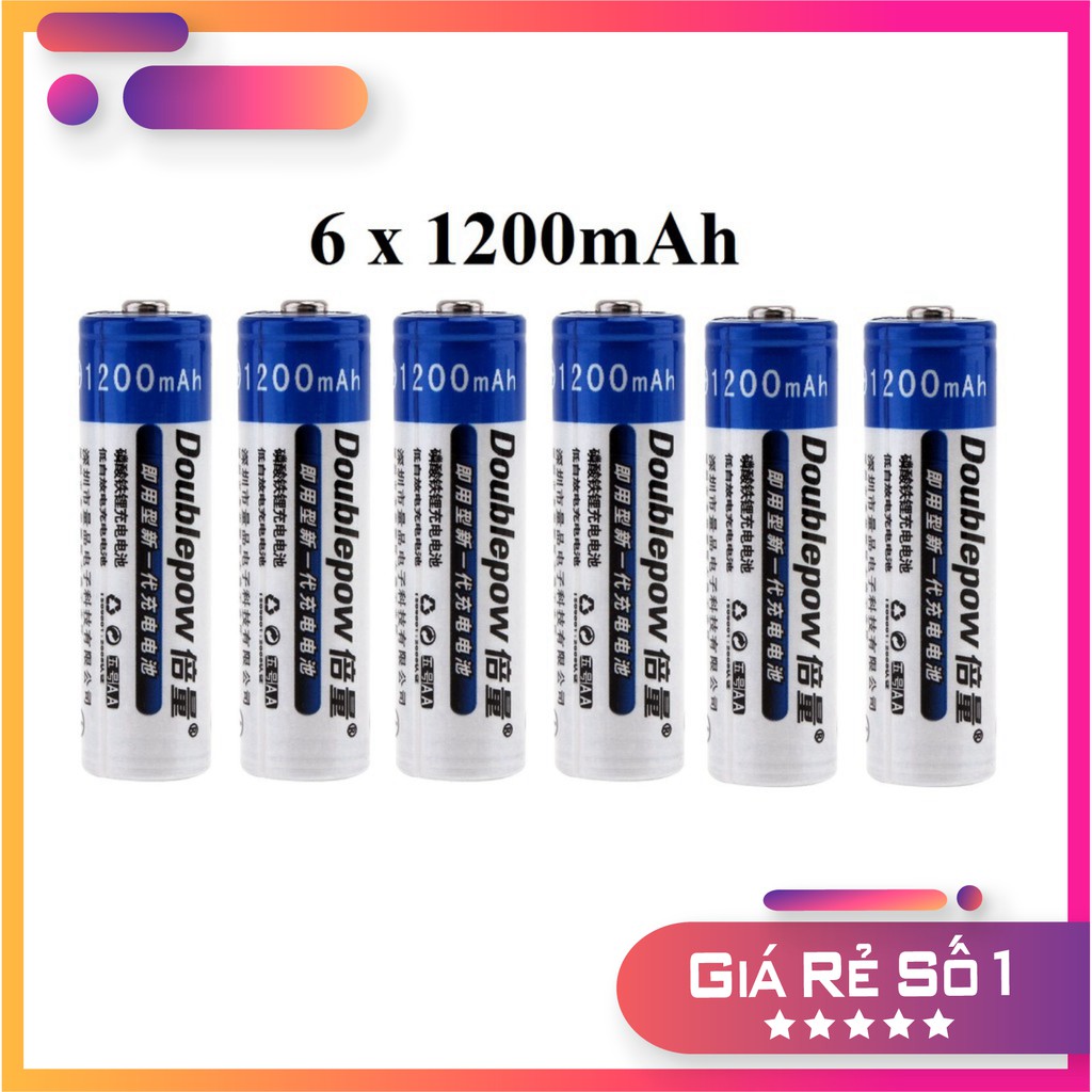 [SIÊU GIẢM GIÁ] Bộ 6 viên pin tiểu sạc Doublepow AA 1200mAh (tặng hộp đựng pin)