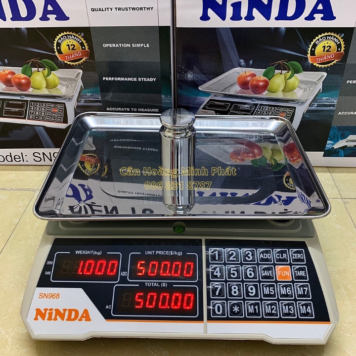 CÂN ĐIỆN TỬ TÍNH TIỀN NINDA SN968 NHẬT BẢN 30Kg/5gam. Màn hình hiển thị 2 mặt. BH 2 NĂM