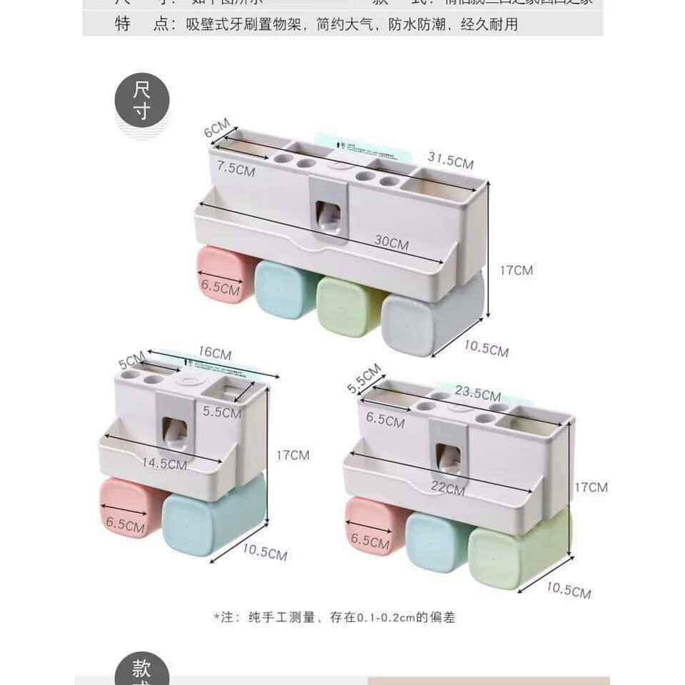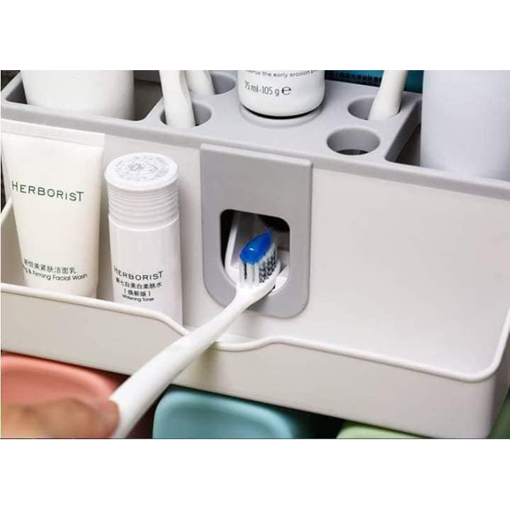 - Bộ sản phẩm bao gồm: 1 khay đựng đồ có giá treo bàn chải, khay đựng đồ nhà tắm, dụng cụ nhả kem tự động + tặng kèm cốc.