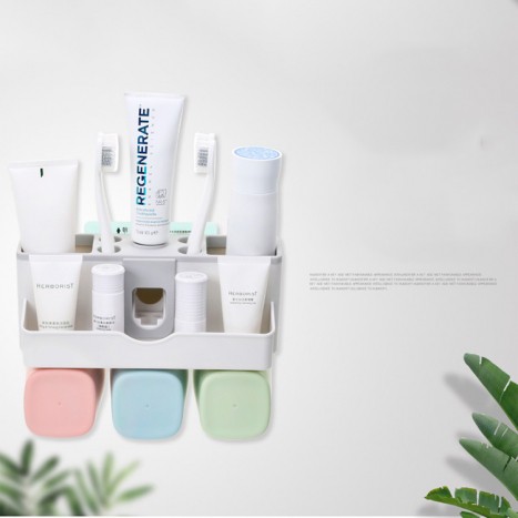 Nhà cửa & Đời sống > Đồ dùng phòng tắm > Kệ đựng bàn chải, kệ nhả kem đánh răng || [SIÊU GIẢM GIÁ] Kệ nhà tắm gắn tường siêu chắc không cần khoan kèm bộ nhả kem đánh răng tự động 3 cốc lúa mạchCòn hàng
