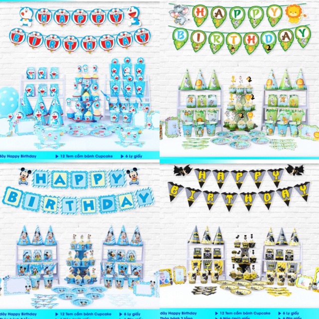 Set trang trí theo chủ đề. Set này là hàng thủ công Việt Nam bao đẹp luôn ạ!khách đừng so giá với các set TQ nha! Các set TQ sẽ rẻ hơn 1 nữa nhưng chất lượng thìh k thể nào bằng! Shop đã từng bán các set TQ nhưng vì chất lượng kém nên shop đã ngưng bán!Set đầy đủ những đồ vdùng cần thiết cho bữa tiệc, cha mẹ nào bận rộn thì mua set này là đủ, khỏi cần suy nghĩ thêm ạ! Set đầy đủ gồm :