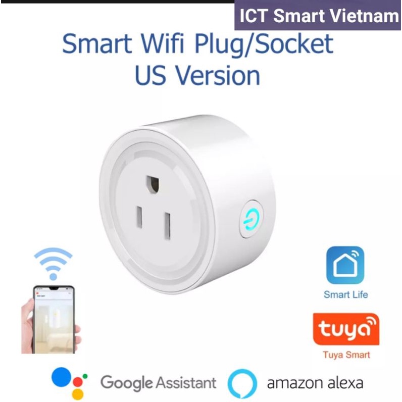 ( Siêu giảm giá)Ổ cắm wifi thông minh chuẩn US 3 chân, work with Google & Alexa