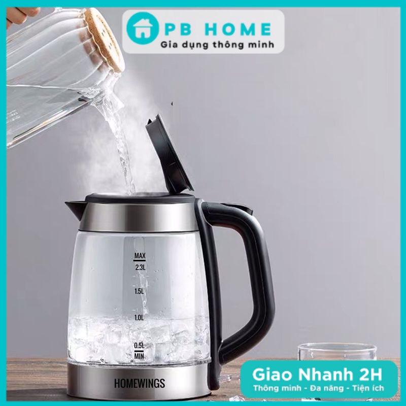 [Siêu HOT] Ấm Siêu Tốc HOMEWING Thủy Tinh 2,3L, Ấm Điện Đun Nước Cao Cấp 1800W