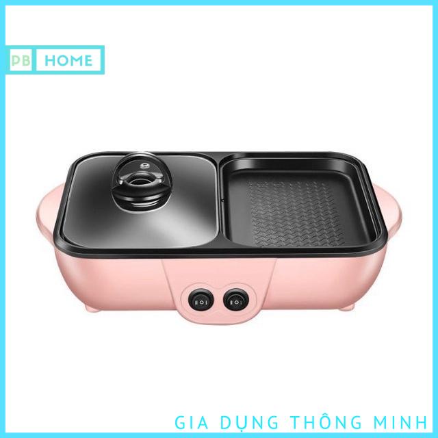 [Siêu HOT] Bếp Lẩu Nướng 2 Ngăn, Bếp Lẩu Nướng 2 In 1, Bếp Chiên, Bếp Nướng Điện Đa Năng (Hộp Hồng)