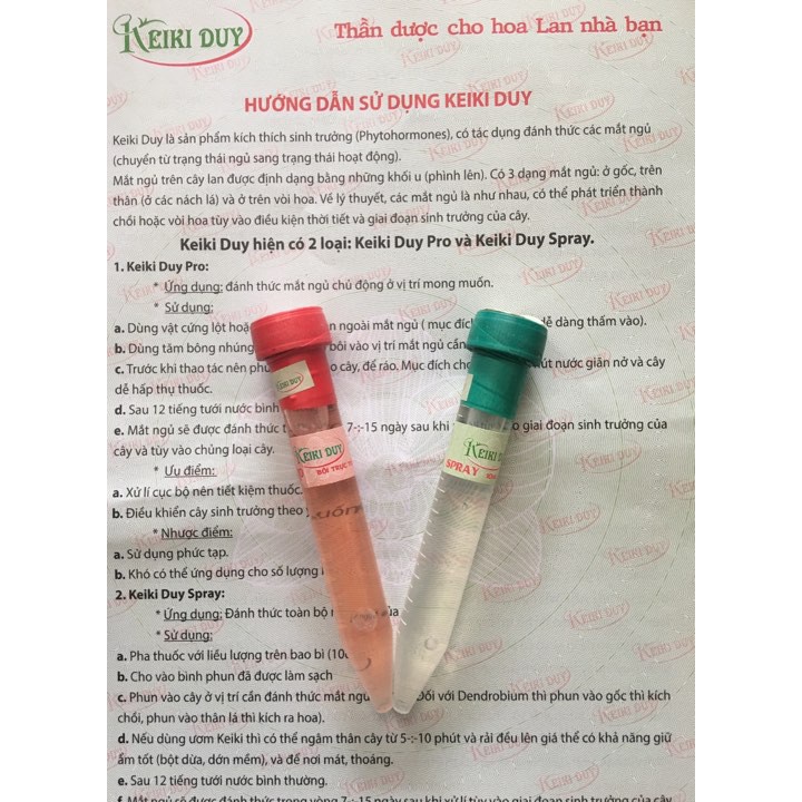 Là sản phẩm kích thích sinh trưởng (Phytohormones), có tác dụng đánh thức các mắt ngủ ( chuyển từ trạng thái ngủ sang trạng thái hoạt động ).Mắt ngủ trên cây lan được định dạng bằng những khối u (phình lên). Có 3 dạng mắt ngủ: ở gốc, trên thân (ở các nách lá) và ở trên vòi hoa. Về lý thuyết, các mắt ngủ là như nhau, có thể phát triển thành chồi hoặc vòi hoa tùy vào điều kiện thời tiết và giai đoạn sinh trưởng của cây. Hiện tại có 2 loại: Keiki Duy Pro và Keiki Duy Spray.