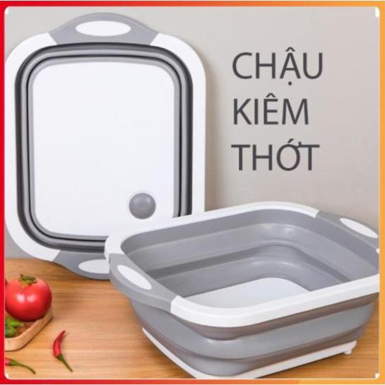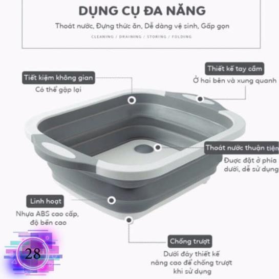 [ Siêu Hot ] Chậu + Thớt Gấp Gọn Kèm Rổ Đa Năng, Thiết Kế Thông Minh Kiểu Dáng Sang Trọng Tiện Lợi, Dễ Sử Dụng