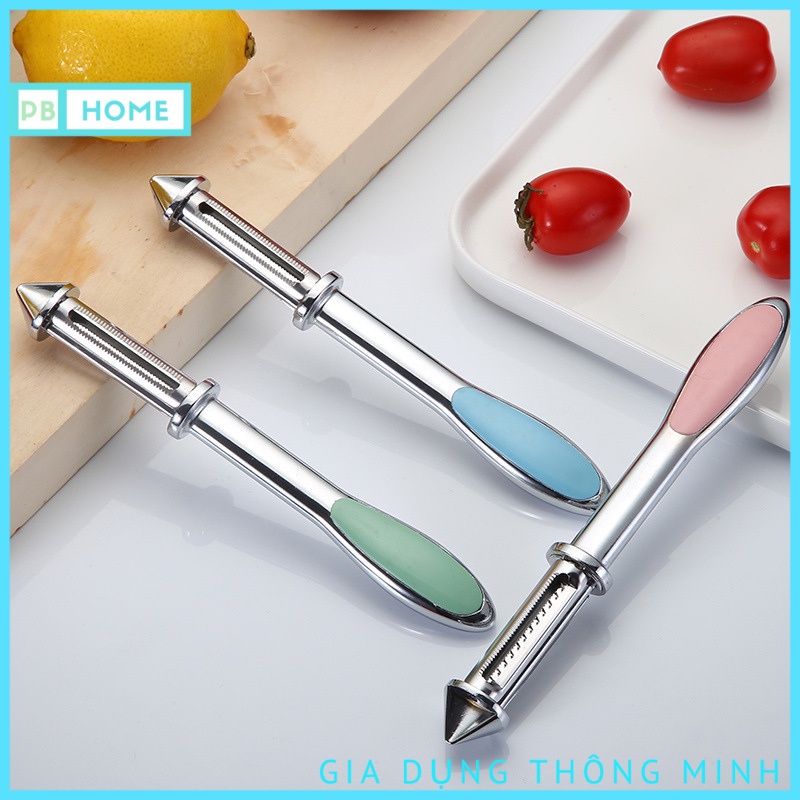 Bên trên được tích hợp từ nhiều loại lưỡi khác nhau, vừa có thể gọt vỏ, khoét vỏ, bào sợi lại cắt tỉa món ăn đẹp mắt, gọn gàng
