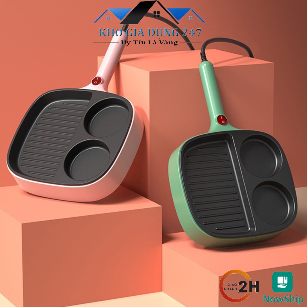 [ SIÊU HOT ] MẪU MỚI Chảo Chống Dính Điện 3 Ngăn Cao Cấp - Làm Bánh Mì Chiên Trứng Tiện Lợi