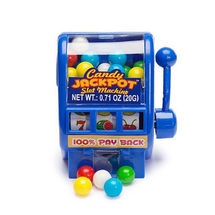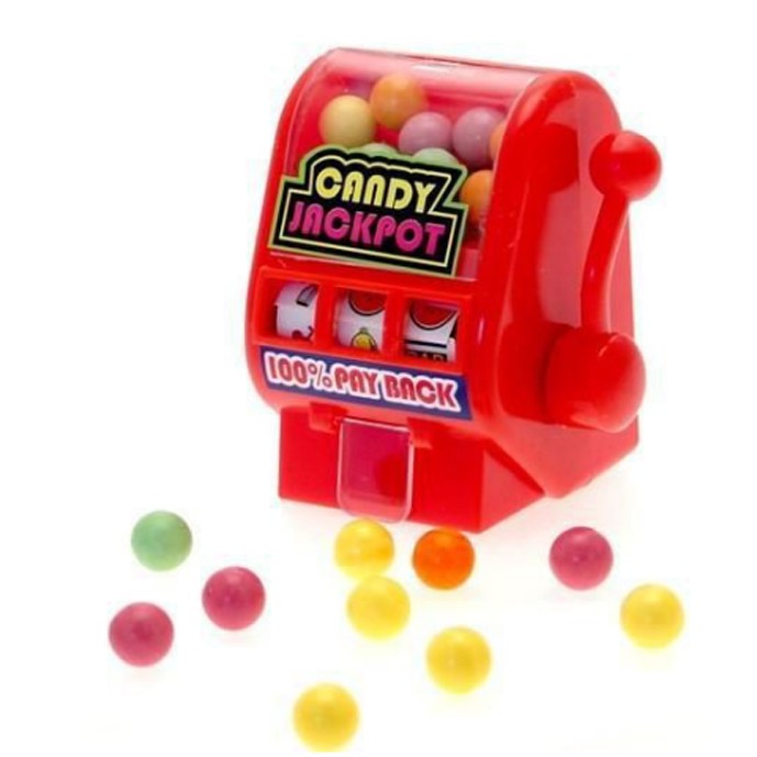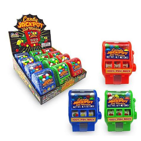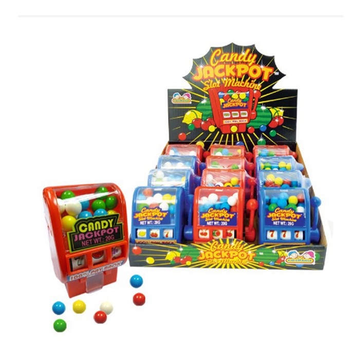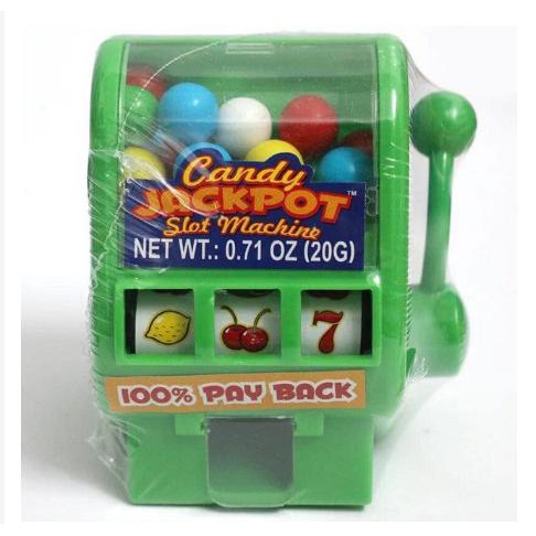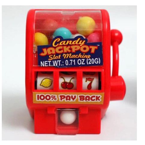 - Phần thưởng là một quả cầu kẹo cao su thơm ngon, dai dai có thể thổi bong bóng. Sản phẩm mô phỏng theo những máy jackpot lớn nổi tiếng của Las Vegas. Xoay cần gạc, những viên kẹo nhỏ xinh sẽ rơi ra cho bé thưởng thức.