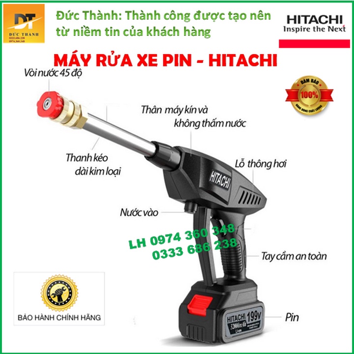 Siêu hot Máy Rửa Xe Pin HITACHI 199V, Rửa Xe-Phun Cây Cảnh, Xịt Rửa Điều Hòa Tiện Lợi