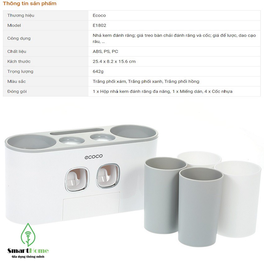 Giới thiệu SIÊU HOTHộp Nhả Kem Đánh Răng Đa Năng ECOCO E1802, Loại 4 Cốc, Sản Phẩm Tiện Dụng, Giúp Không Gian Nhà Tắm Gọn Gàng