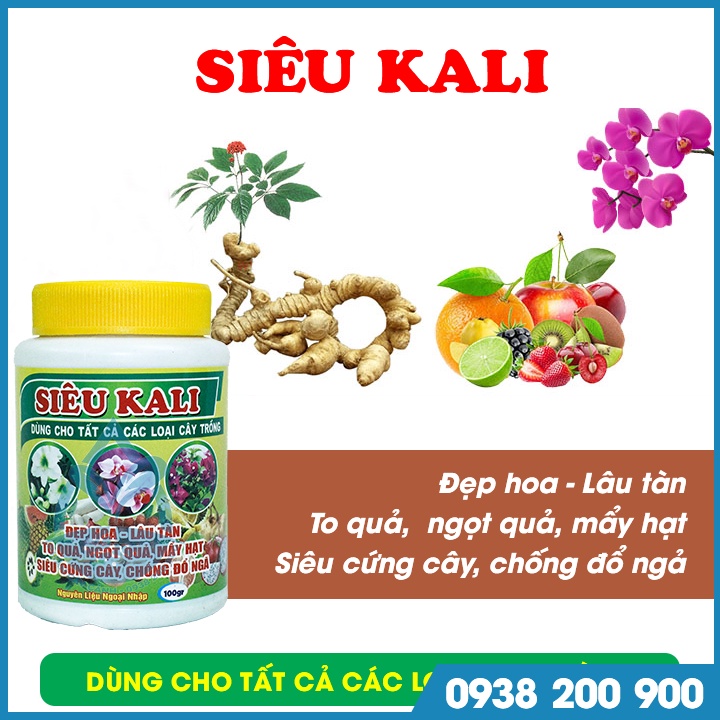 Giới thiệu Siêu Kali - Dùng cho tất cả các loại cây trồng - chai 100gr - Giúp hoa đẹp - lâu tàn, quả to - ngọt, mẩy hạt, siêu cứng
