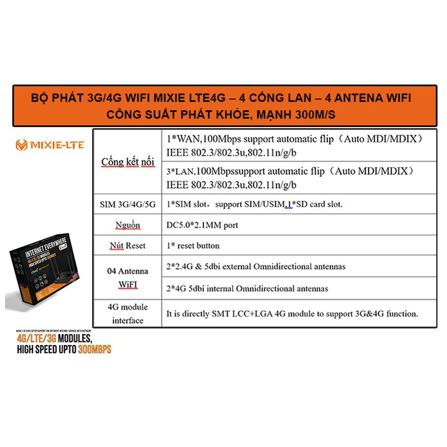 ✔️1. Bộ Phát SIÊU KHỎE WIFI 4G/3G MIXIE ( 4 Anten & 3 Cổng Lan & 1 Cổng Wan)