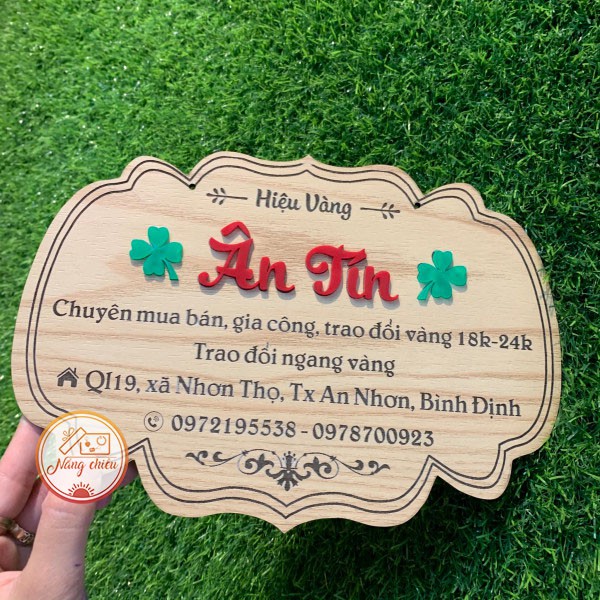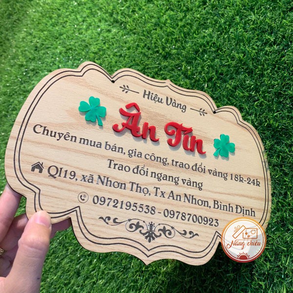 - Bảng hiệu được làm từ chất liệu gỗ tự nhiên