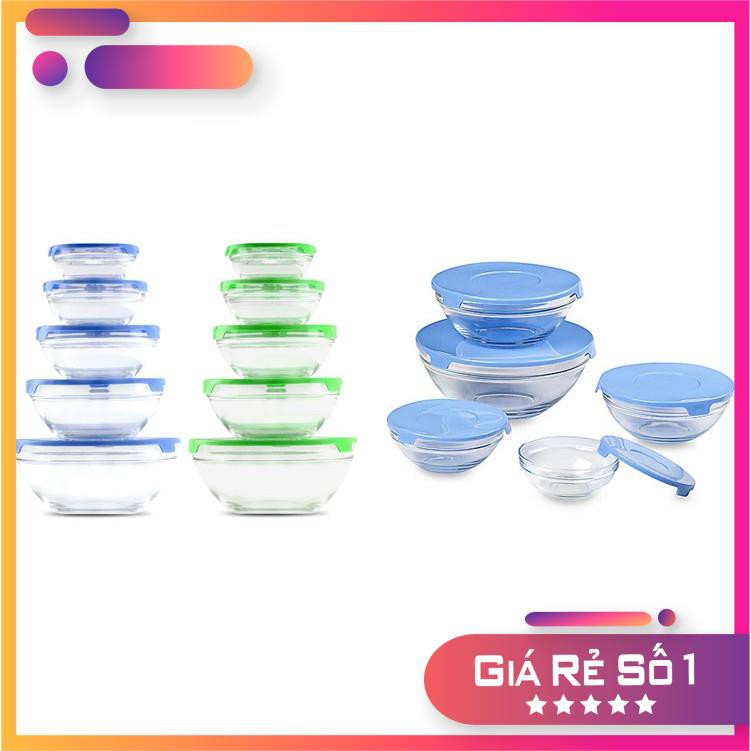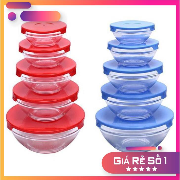 Giới thiệu [ SIÊU KHUYẾN MẠI ] Bộ 5 bát thuỷ tinh in hoa có nắp