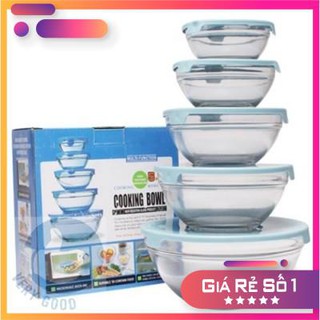 [ SIÊU KHUYẾN MẠI ] Bộ 5 bát thuỷ tinh in hoa có nắp