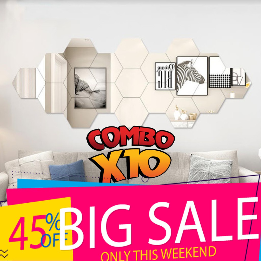 Giới thiệu [SIÊU KHUYẾN MÃI] COMBO 10 Bộ 12 miếng gương dán tường 3D hình lục giác 4x4