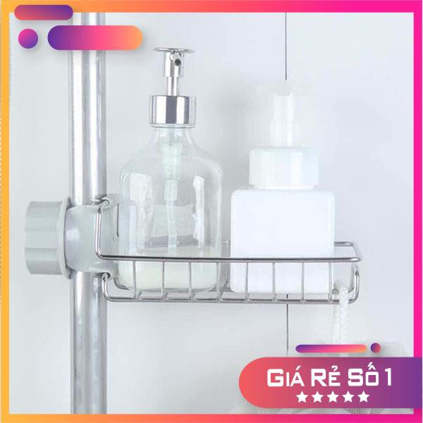 – Ai ngại khoan tường hoặc các giá nhựa, thủy tinh lâu lâu đóng cặn canxi nhìn chướng mắt lắm thì đổi qua cái inox này nha- gắn trực tiếp lên thanh inox vòi tắm khỏi đục đẽo luôn!