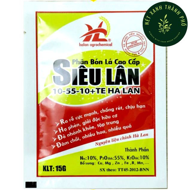 Phân Bón Lá Cao Cấp Siêu Lân Hà LanLà sản phẩm phân bón chứa hàm lượng lân cao giúp bộ rễ phát triển mạnh ở gian đoạn cây con, giúp hoa ra nhanh và đồng loạt, chống rét, nghẹt rễ gây thối rễ, rễ chậm phát triển.