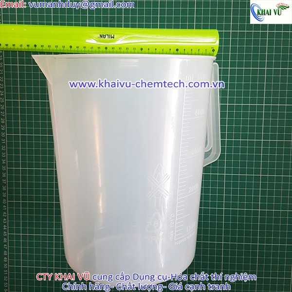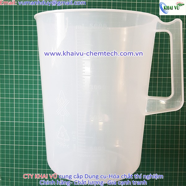 Công ty KHAI VŨ chuyên cung cấp Ca nhựa có chia vạch có mỏ PP 5000ml, vạch trắng đong HÓA CHẤT