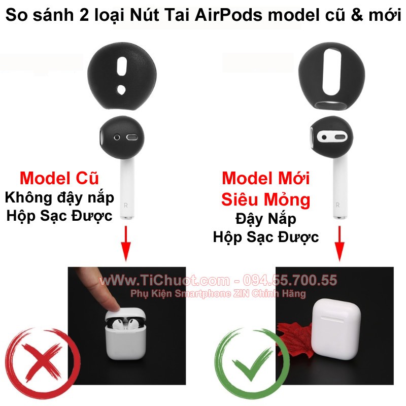 ✔️ Nút Thế hệ mới nâng cấp, mỏng hơn thế hệ đầu. Tai có gắn nút khi gắn vào hộp sạc vẫn Đóng Nắp Hộp & Sạc ok, không bị cấn khi đậy nắp hộp sạc.