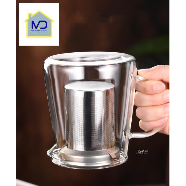 (siêu phẩm) Ấm pha trà thủy tinh có lõi lọc Inox hình tháp
