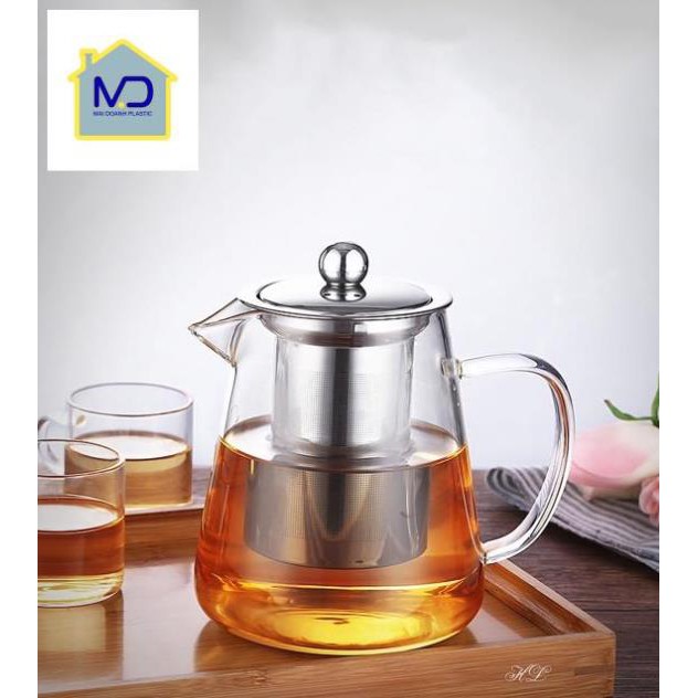 Đây là sản phẩm ấm pha trà thủy tinh, sản xuất theo công nghệ Đài Loan với hệ số borosilicate cao, giúp thủy tinh có khả năng chịu nhiệt cực kỳ tốt. Đồng thời, với sự ổn định của của các nguyên liệu hóa học cấu tạo, được thử nghiệm trong môi trường nhiệt cao, chất liệu thủy tinh láng bóng, không hấp thụ hương vị trà, ấm trà thủy tinh này sẽ giúp người dùng thưởng thức trọn vẹn mùi vị trà nguyên chất và tinh khiết nhất. Màu sắc của nước trà, cánh trà, hoa trà hay lớp sương khói mờ ảo cũng được thể hiện toàn bộ bên trong lớp thủy tinh trong suốt, mang lại một cảm quan duy mĩ, cảm giác thư thái cho việc thưởng trà.