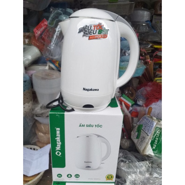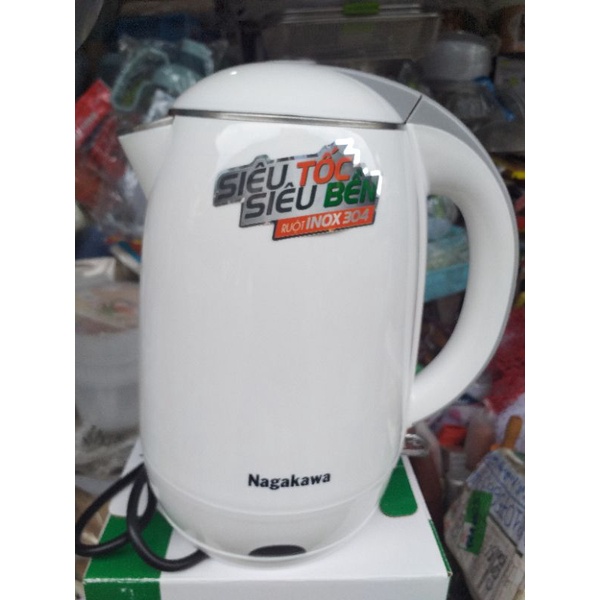 Thiết Bị Điện Gia Dụng > Đồ gia dụng nhà bếp > Ấm đun siêu tốc || #Siêu phẩm# Ấm siêu tốc NAGAKAWA trắng 1,8L - Vỏ nhựa trắng đẹp,bên trong ruột và nắp 100% từ inox 304 không gỉ, ko mùiCòn hàng