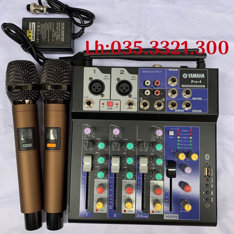 [Siêu Phẩm] Bàn Trộn Mixer Yamaha Pro-4 Kèm 2 Mic Hát Karaoke+Thu âm Livestream cực ha