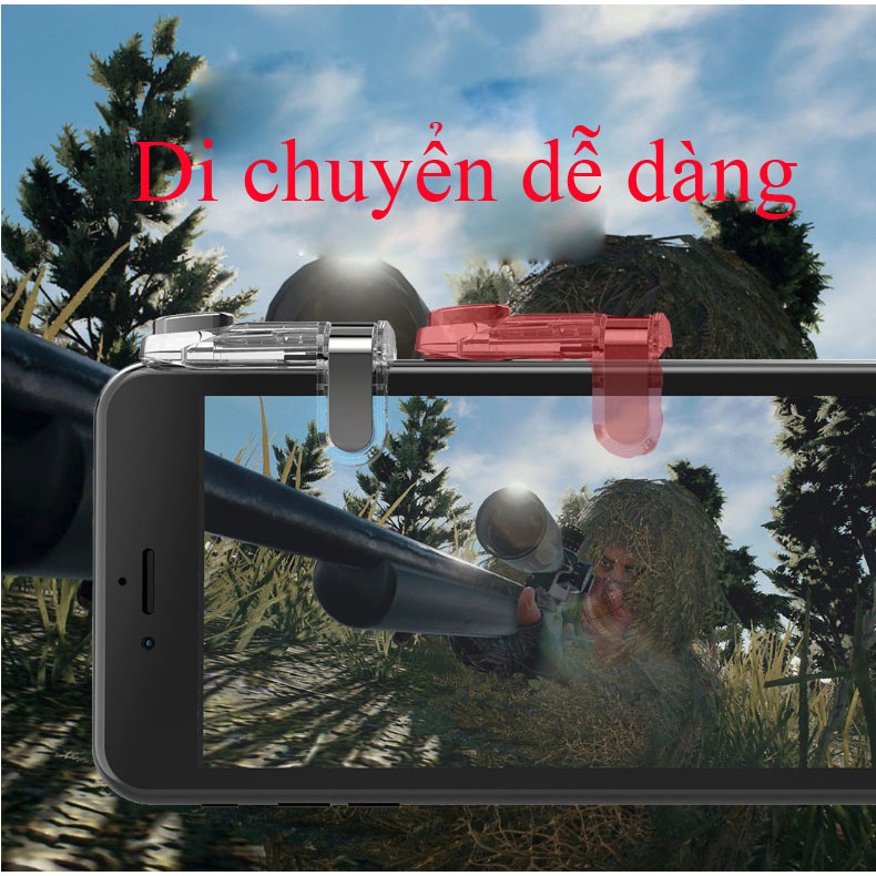 🕹️🕹️🕹️ Bộ 2 Nút Bấm Chơi Game Bắn Súng Pubg, Ros Dòng Cải Tiến Trên Điện Thoại, hỗ trợ các bạn chơi PUBG mobile phát huy hết khả năng của mình với 4 ngón điều khiển khi chơi trên mobile hay ipad. 🕹️🕹️🕹️👍👍👍Khi giao tranh với mục tiêu thì chúng ta đều biết là kị đứng một chỗ để bắn, chúng ra luôn muốn là chạy ngang, chạy qua chạy lại để đối phương khó bắn chúng mình hơn, mà muốn làm được điều đó, ngón cái bên tay trái phải chạm liên tục không được nhấc lên. Còn bên tay phải thì khi mà chúng ta di chuyển như vậy đồng nghĩa với cái tâm nó chung di chuyển theo, cả mục tiêu của các bạn có thể cũng di chuyển nữa vậy lên ngón cái bên tay phải này cũng phải chỉnh hướng chỉnh tâm liên tục để bám mục tiêu.