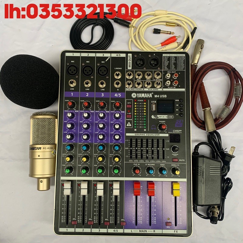 [Siêu Phẩm]Bộ Mic Karaoke Kèm Thu Âm Mixer Yamaha M4+Micro PC K200 chính hãng kèm dầy đ