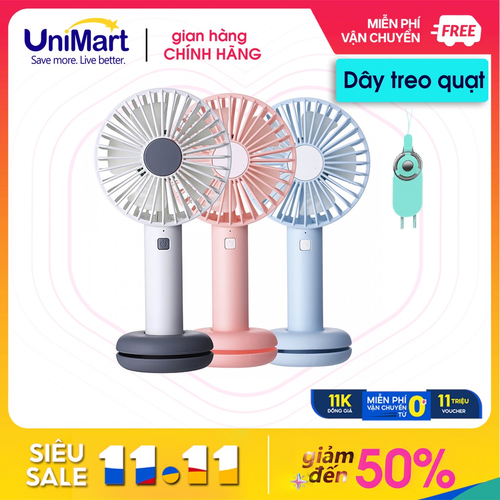{SIÊU PHẨM} Quạt tích điện mini Donut T9 - Mua 1 Tặng 1 - Thiết kế chân đế quạt bánh Donut - 3 mức gió -UniMart Store