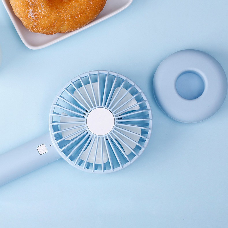 Điện Thoại & Phụ Kiện > Phụ kiện > Quạt USB & Quạt điện thoại || {SIÊU PHẨM} Quạt tích điện mini Donut T9 - Mua 1 Tặng 1 - Thiết kế chân đế quạt bánh Donut - 3 mức gió -UniMart StoreCòn hàng