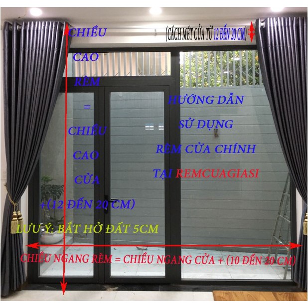 + Đối với cửa chính: Chiều cao rèm= chiều cao lọt lòng cửa + (12 đến 20cm)