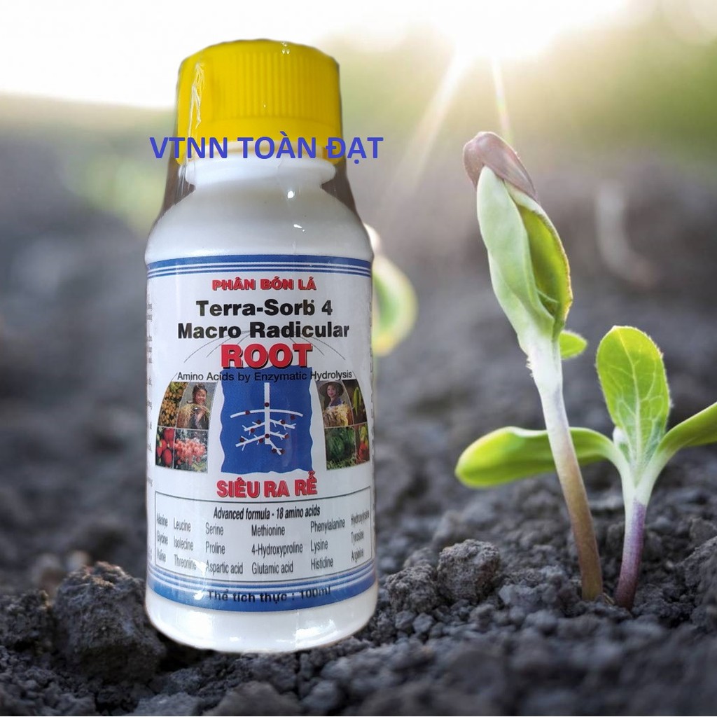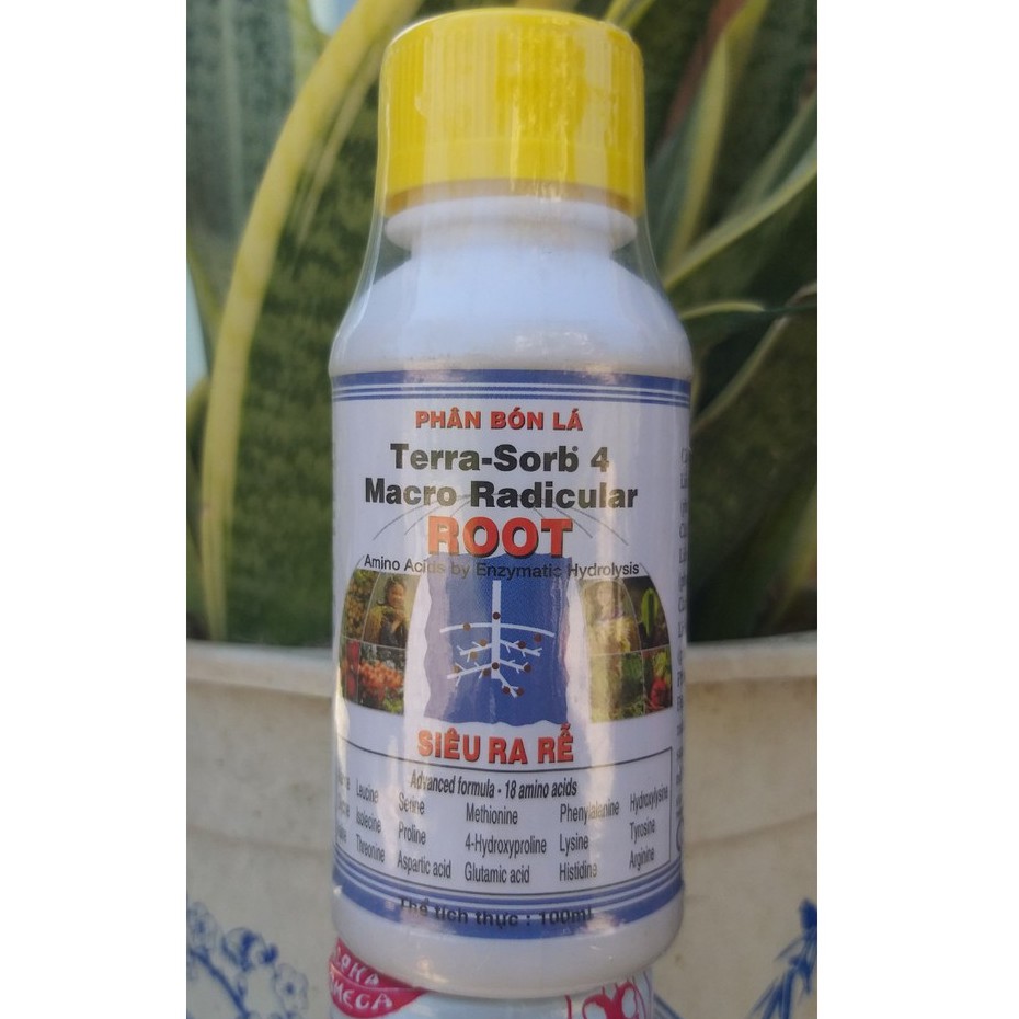 Phân bón lá cao cấp siêu ra rễ Terra Sorb 4 Root (100ml)Phát triển bộ rễ nhanh, khỏe, dễ dàng phục hồi sức sống cho cây, nguồn bổ sung dinh dưỡng đa trung vi lượng (18 amino axit), vitamin kịp thời, phân hữu cơ sinh học tốt cho môi trường và con người.