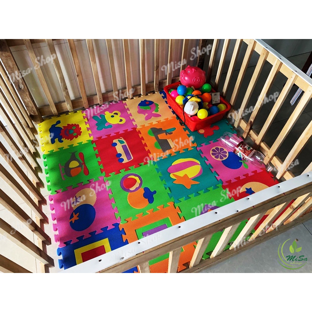 *** Bộ sản phẩm bao gồm 20 miếng, kích thước 30cm x 30cm x 1cm (1 miếng). Tổng diện tích ghép được 1.8 m2*** Chất liệu xốp êm ái, không mùi hôi, an toàn cho bé, dễ lắp ráp và chà rửa.
