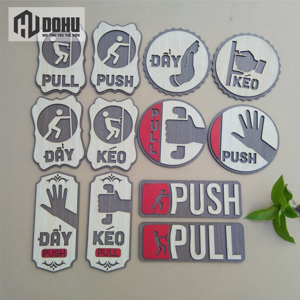 Mến chào bạn!Cám ơn bạn đã đến với sản phẩm Bảng Gắn Cửa Kéo/ Đẩy (Pull/Push) Bằng Gỗ 2 Lớp Vintage Decor Cắt Tia Laze (Có Sẵn Băng Keo Dán Tường) của DOHU Shop!