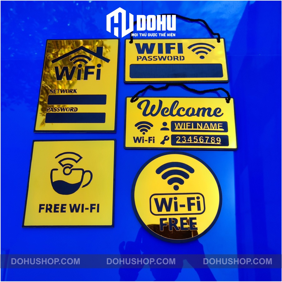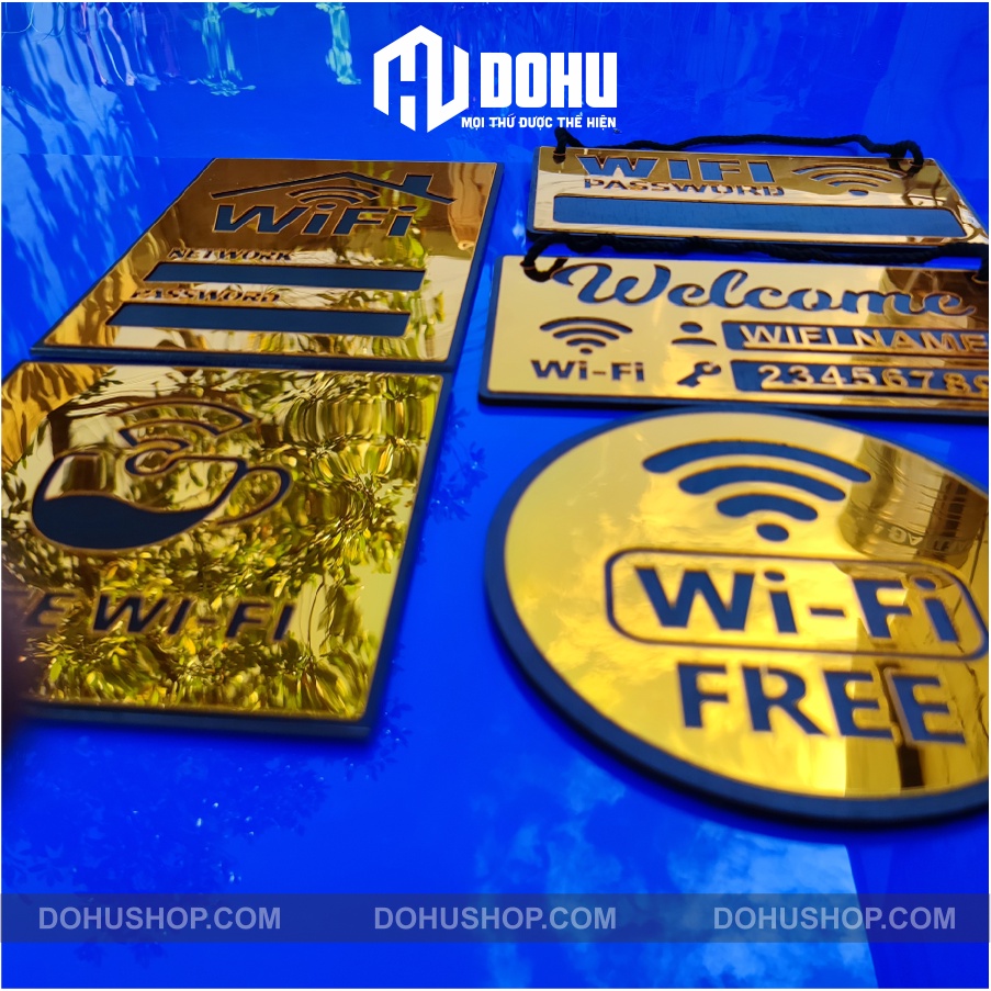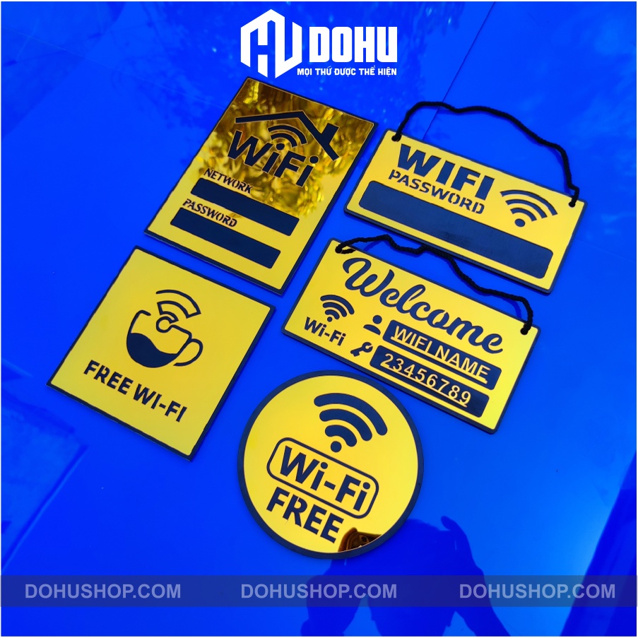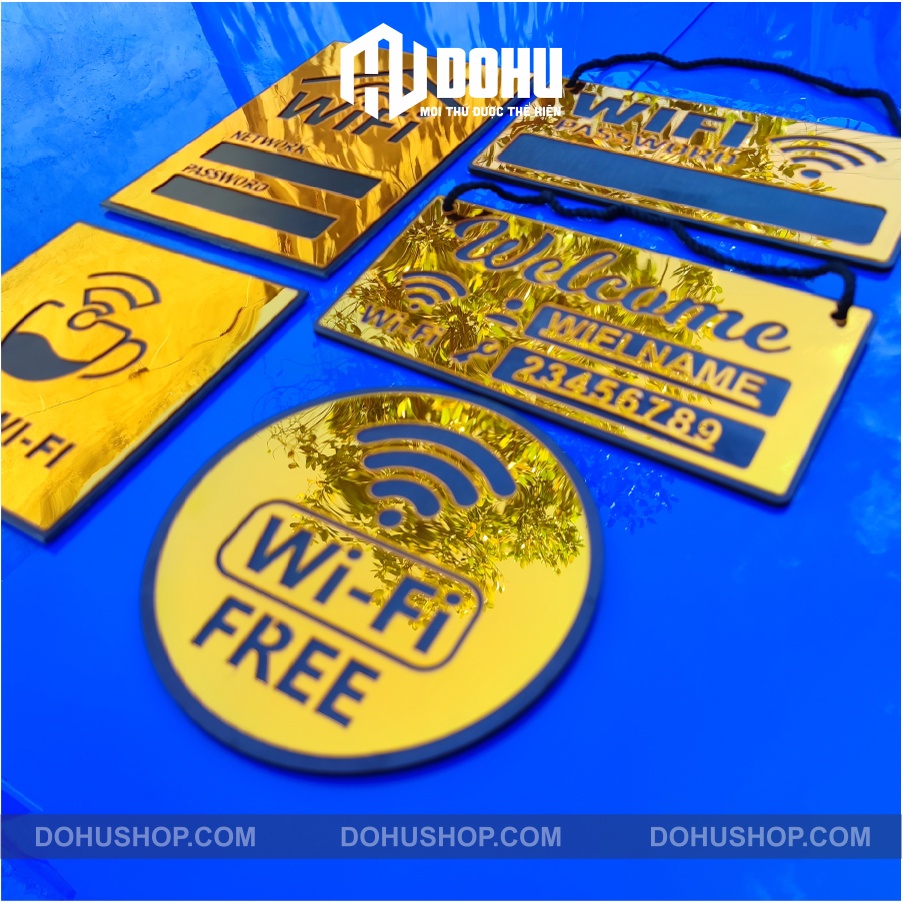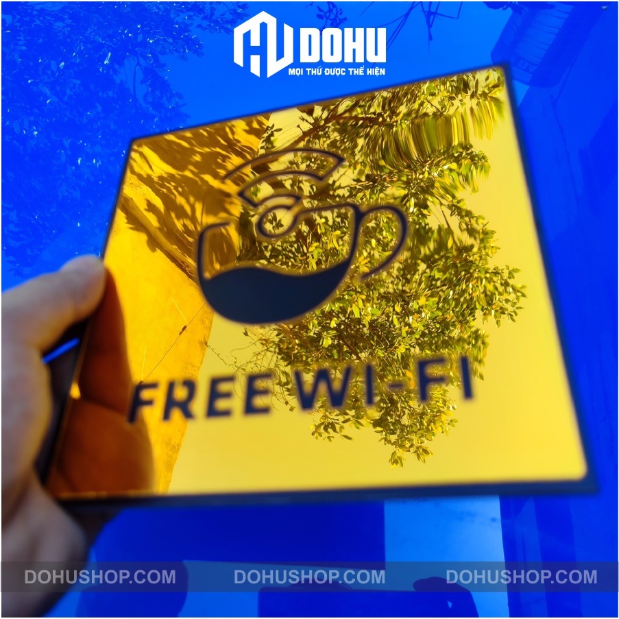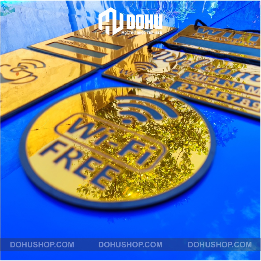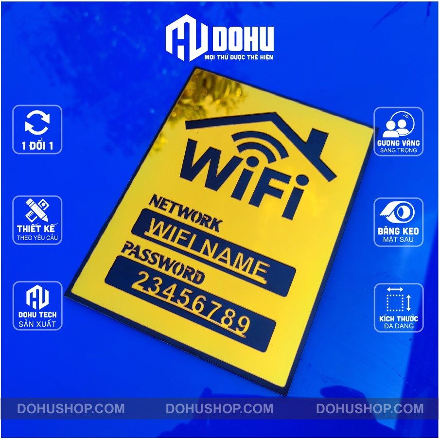 Mến chào bạn!Chân thành cám ơn bạn ghé thăm sản phẩm bảng wifi làm bằng nhựa tráng Gương Vàng sang trọng, hiện đại, có một không hai của DOHU Shop!