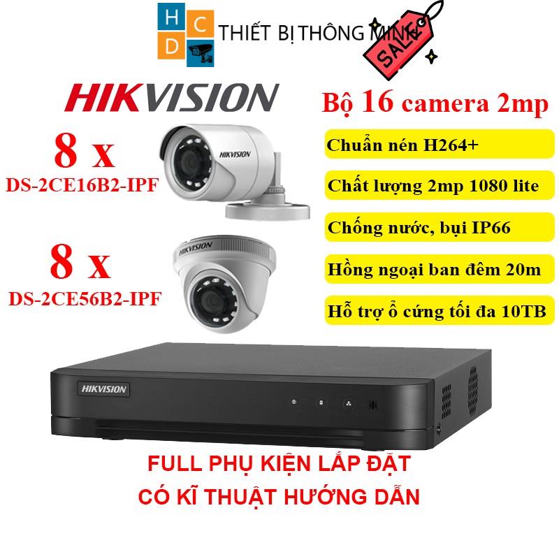 {Siêu rẻ} Bộ 16 camera giám sát Hikvision 2mp Full HD chính hãng tặng kèm đầy đủ phụ kiện bảo hành 24 tháng