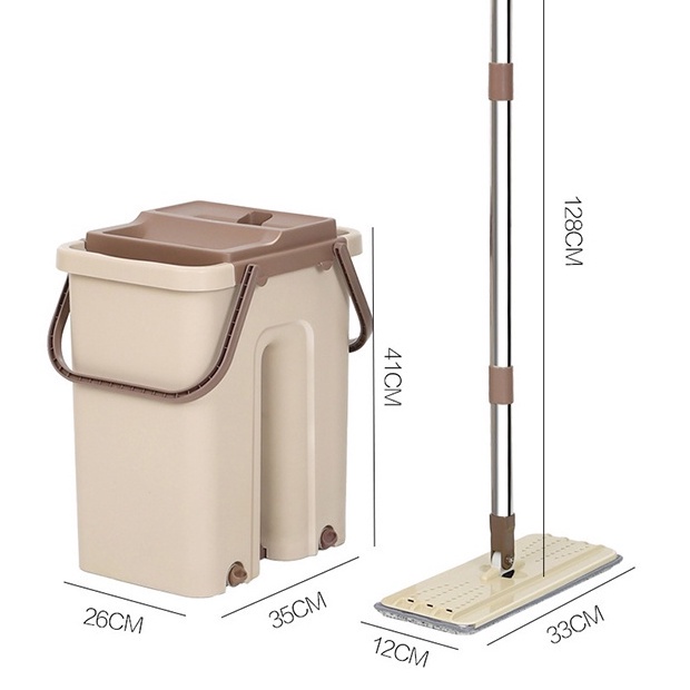 Kích thước bàn lau: 33cm Chiều dài cây lau nhà: 120cm Dung tích thùng: 15L Có 2 van xả nước