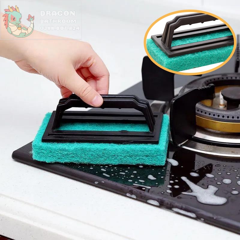 Mút xốp vệ sinh bếp có tay cầm tiện lợi, giúp bạn dễ dàng chùi rửa không gian bếp một cách nhanh chóng và thoải mái.