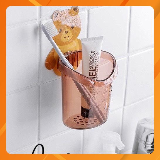 (SIÊU RẺ) Cốc gấu dán tường đựng bàn chải đánh răng, cốc gấu nâu đựng kem đánh răng (Hàng có sẵn)