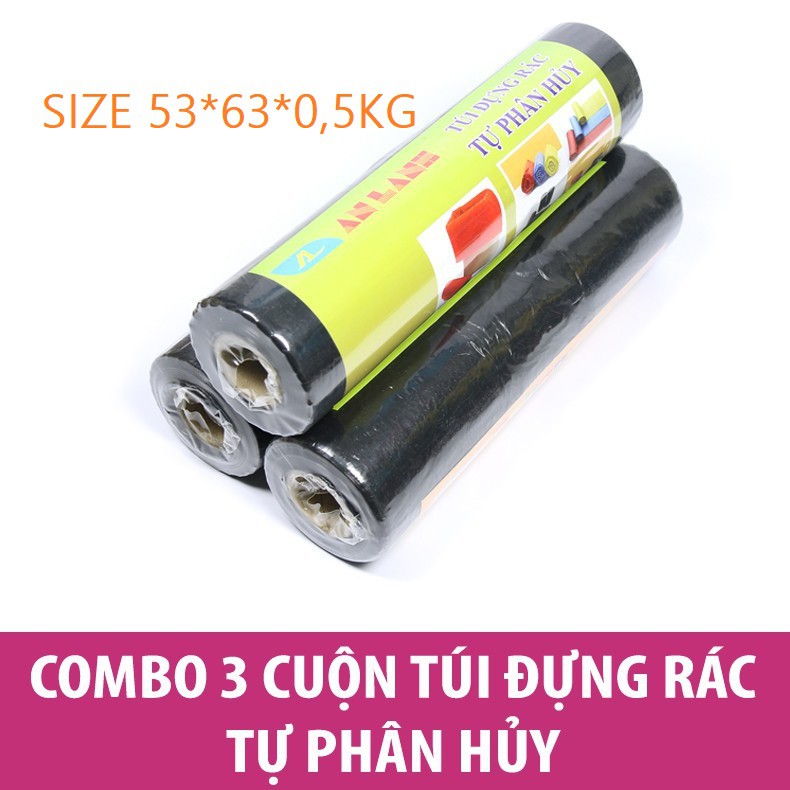 Giới thiệu SIÊU RẺ - COMBO 3 CUỘN TÚI ĐỰNG RÁC TỰ PHÂN HỦY AN LÀNH [0.5KG/ CUỘN]