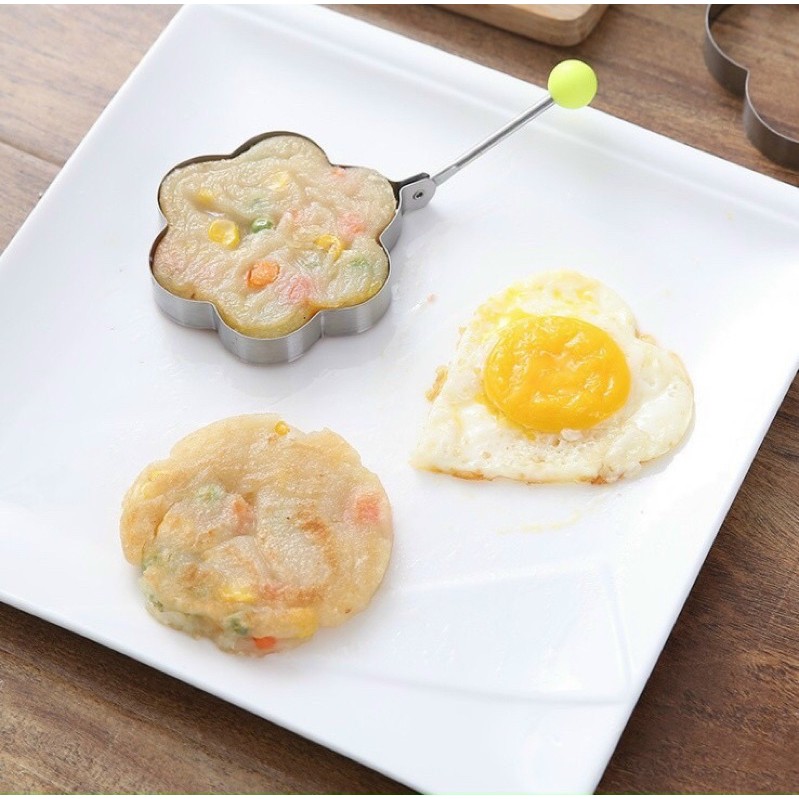 Thiết kế tiện dụng với nhiều hình dạng xinh xắn như ngôi sao, trái tim, hình tròn, hoa... giúp món trứng chiên của bạn thật bắt mắt và hấp dẫn hơn.