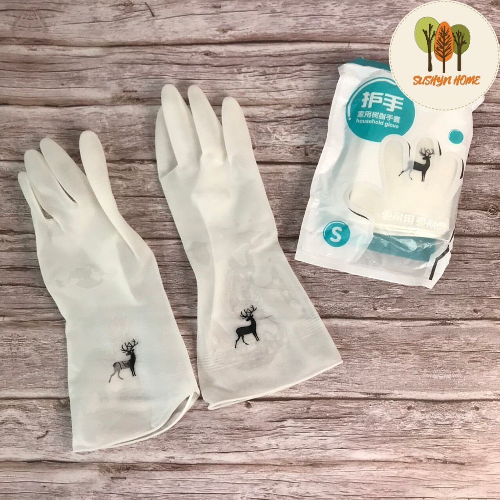 Nhà cửa & Đời sống > Dụng cụ & Thiết bị tiện ích > Găng tay, kính bảo hộ & mặt nạ || [SIÊU RẺ] GĂNG TAY CAO SU MÀU TRẮNG HỌA TIẾT HƯƠU SIÊU DAI 1 ĐÔI (HOT)Còn hàng